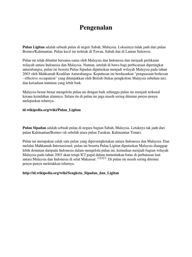 Konflik Persempadan Dan Tuntutan Bertidih Di Pulau Ligitan Sipadan Pdf