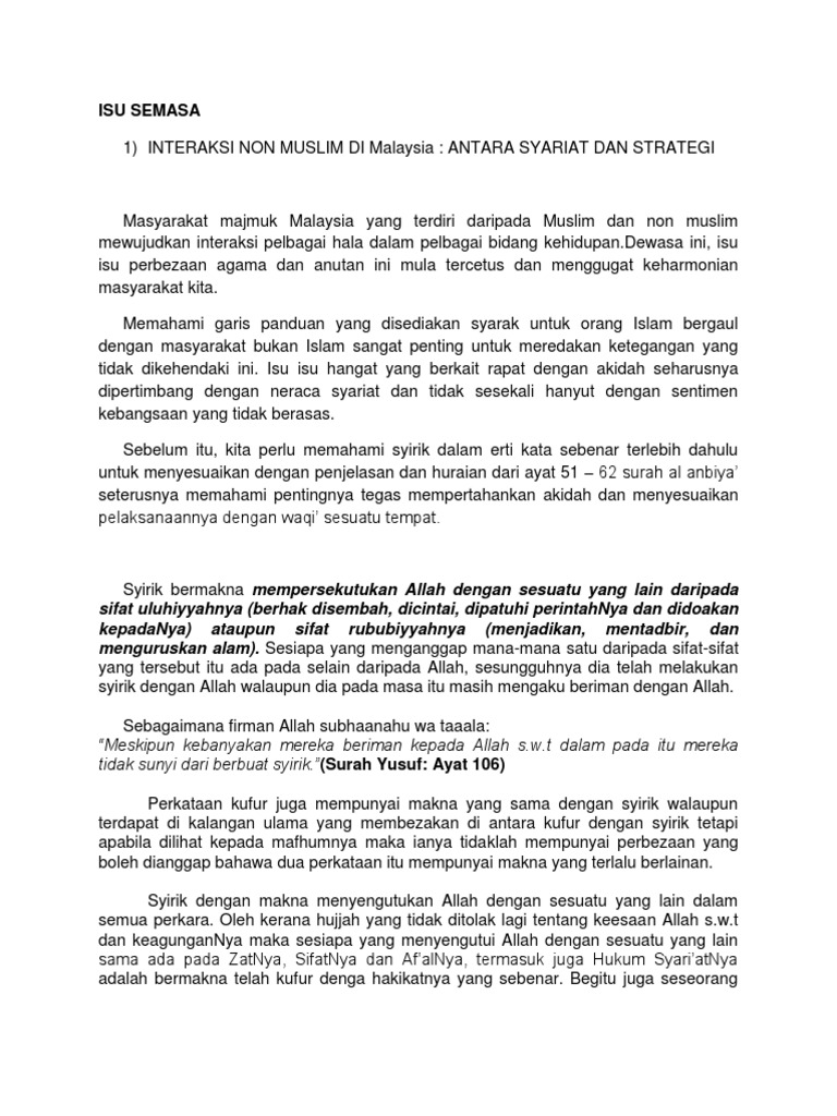 Isu isu semasa di malaysia agama. Bagi umat Islam arak ni haram diminum melainkan dalam keadaan darurat. Isu Isu Semasa Berkaitan Dengan Akidah. Nur Azuki bin Yusuff.