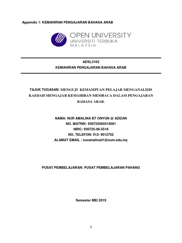Bahasa Arab BA sangat sinonim dengan agama Islam sebagai bahasa Al-Quran. Kepelbagaian ini telah menimbulkan beberapa isu penting di dalam bilik darjah. ISK Seri Belahan Tampok1972-1977 iiSMK Parit Betak1978-1982 iiiYayasan Akademik Sekolah Arab Tampok 1983-1984 ivUniversiti Malaya1985-1988 vInstitut BahasaKL1989 Perkhidmatan.