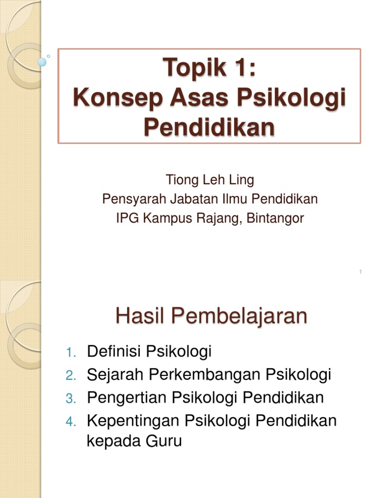Psikologi Pendidikan Topik 1 Pengenalan Psikologi Pendidikan Objektif